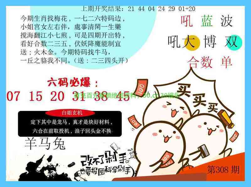 308期:杀特三尾(136尾)开:兔39中